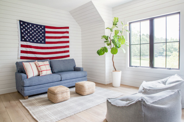 2. Unfurl a flag for the Fourth. Get in the Independence Day spirit by putting up an American flag on your porch in time to celebrate the Fourth of July. Don’t have room for a full-size flag? Try lining your walkway with mini flags, or hang a pleated fan above the door instead. Whether you hang your flag vertically (as shown here) or horizontally, be sure you keep the union (the part with the stars) in the upper left corner.